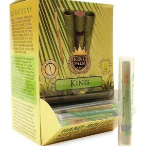 DISPLAY TUBO KING PALM SLIM 50 UNIDADES Hoja de palma liada a mano natural de combustión lenta. Las hojas de King Palm no contienen químicos ni conservantes, no contienen sabores artificiales y NO contienen pegamento. El filtro natural de cáscara de maíz le ayudará a asegurarse de que no caigan las hierbas sueltas y también eliminará la entrada de aceites en la boca. Estamos seguros de que encontrará que estas hojas naturales son de mejor calidad y mucho más LIMPIAS que los papeles de liar comunes en el mercado. Libre de Tabaco y nicotina Tamaño: Slim (1.25gr) Contenido: 50 unidades envasadas en un tubo pop top individualmente 119,07€ IVA incluido -